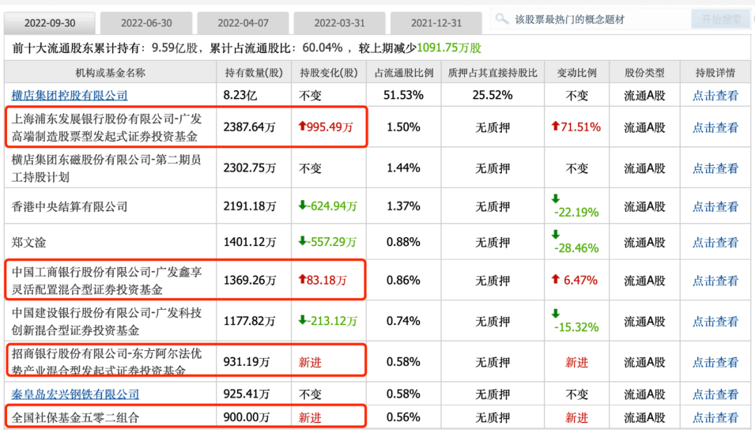 值得注意的是,目前横店东磁共42只基金和1家社保持仓,合计持股占流通股7.3%。其中,广发高端制造股票型增持995.49万股;广发鑫享灵活配置混合增持83.18万股;东方阿尔法优势产业混合和社保基金五零二组合为新进持仓。