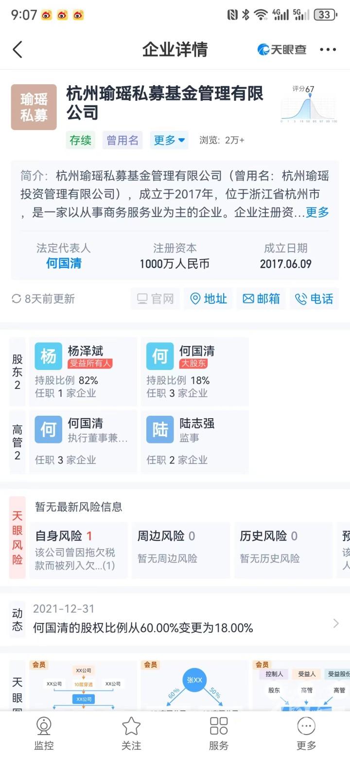 根据杭州瑜瑶备案登记信息显示,其法定代表人、总经理是何国清,曾多年从事纺织行业,做过销售等工作;公司副总经理陆志强此前也在纺织行业工作多年,担任销售、营销等岗位。2017年6月,此前并无私募从业经历的陆志强,突然出现在当时刚成立的杭州瑜瑶,担任公司风控专员、监事,并在一年后担任副总经理。