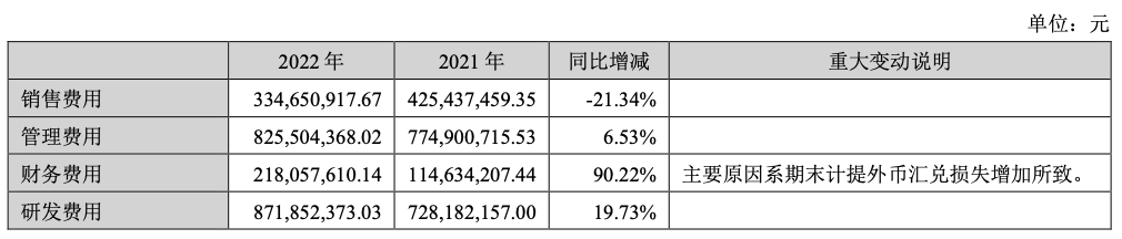 销售、管理、财务、研发费用:
