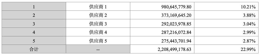 前五大供应商: