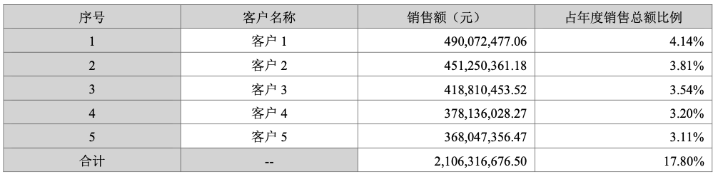 前五大客户: