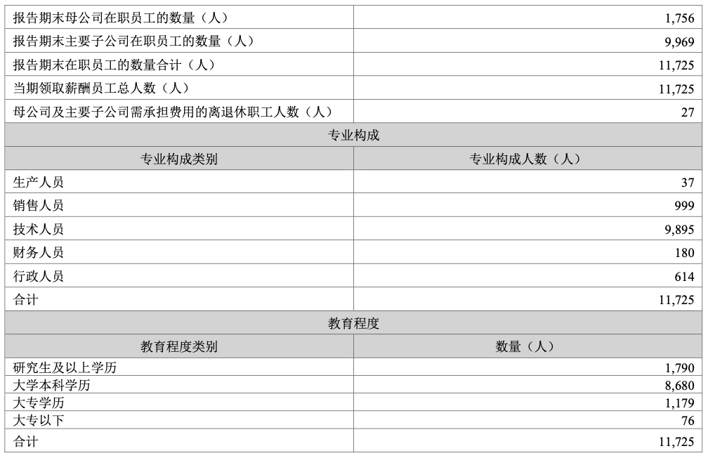 员工共 11725 人: