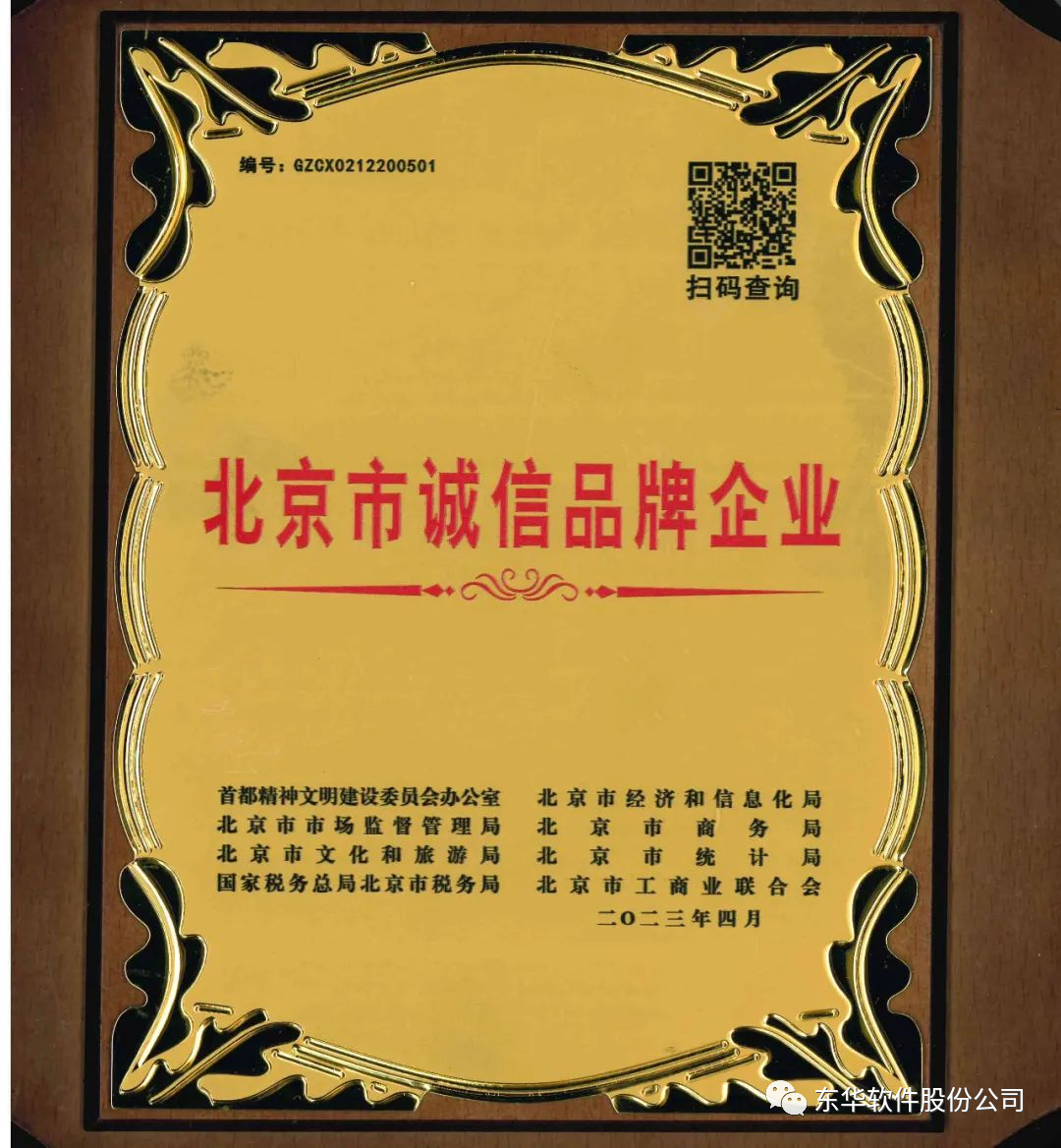 近日,东华软件荣登首届“北京市诚信品牌企业”榜单并作为2022年度“百业万企”共铸诚信文明北京活动先进典型,被首都精神文明建设委员会办公室、北京市经济和信息化局、北京市市场监督管理局、北京市商务局、北京市文化和旅游局、北京市统计局、国家税务总局北京市税务局、北京市工商业联合会通报表扬。