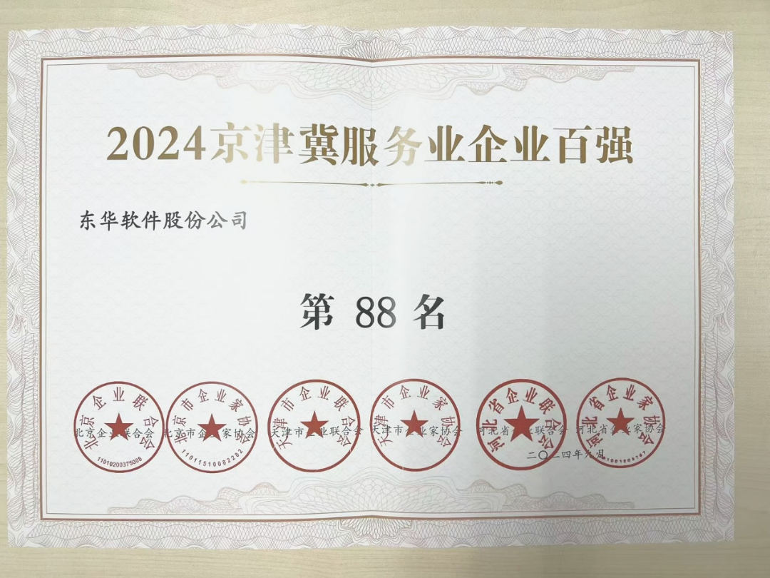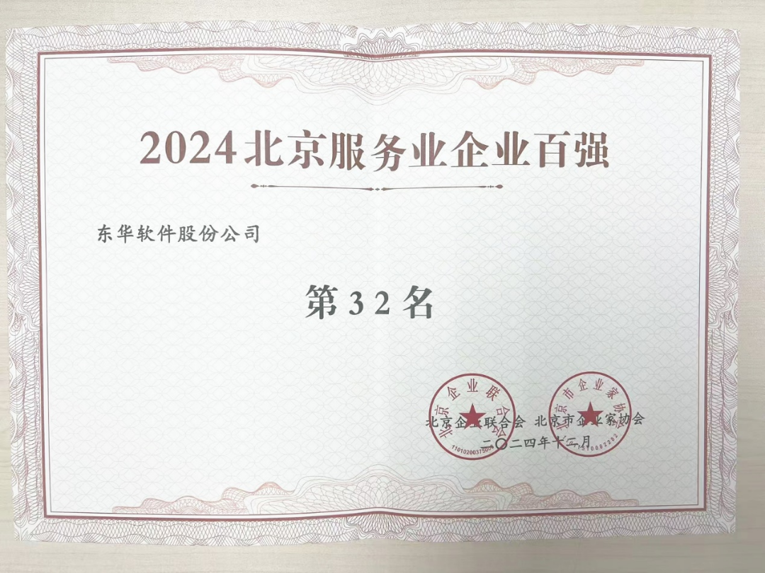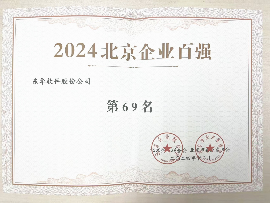 东华软件荣登2024北京企业百强等3项榜单