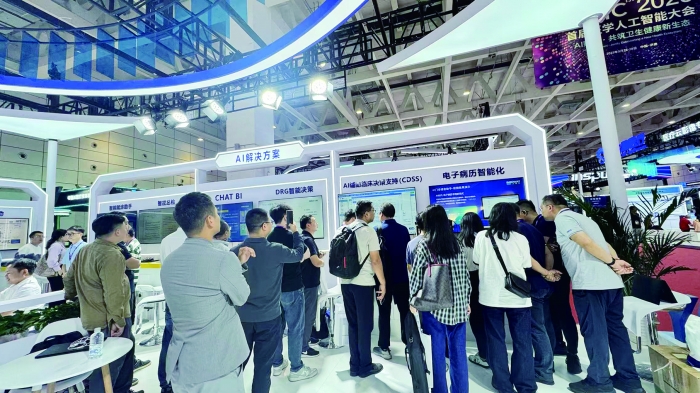 | | 在今年举行的首届医学人工智能大会上, 东华软件 的解决方案受到关注。 记者 李雁争 摄 |