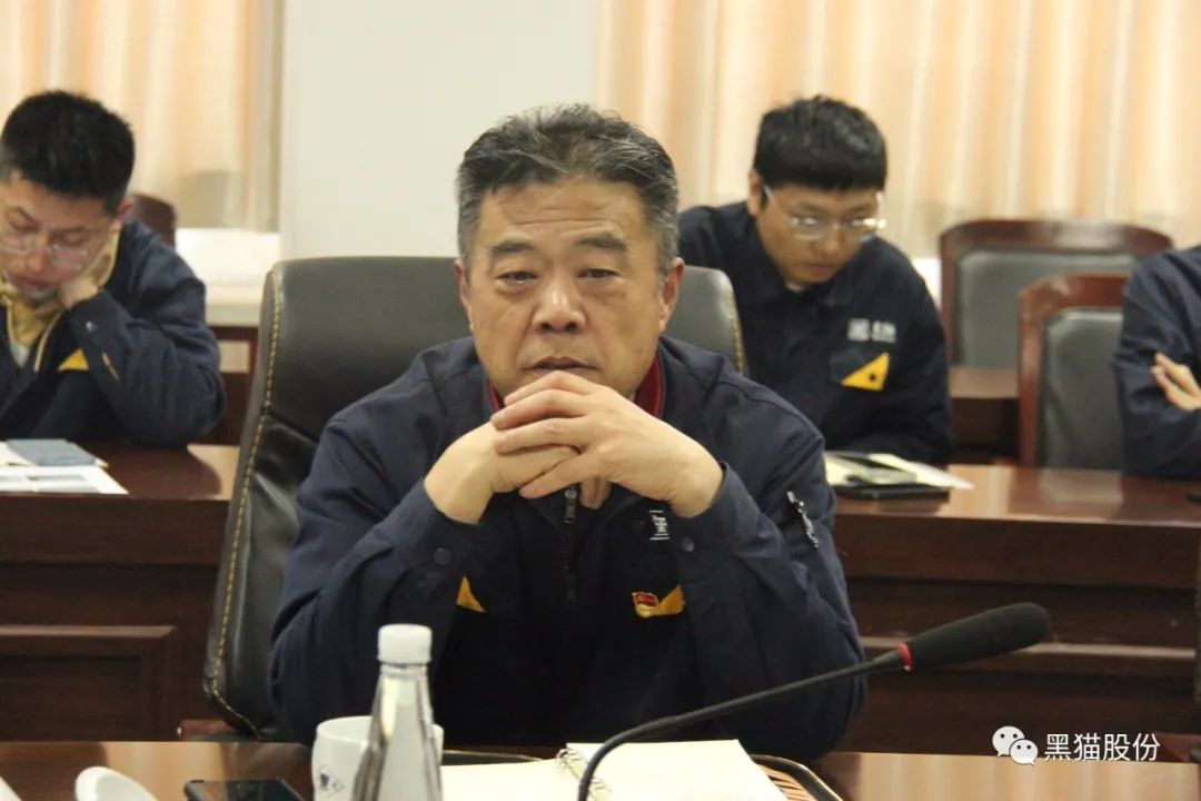 3月14日下午,黑猫集团党委委员、行政总召集人盛旺喜一行深入黑猫股份调研企业现场管理工作并召开座谈会。集团党委委员、副总经理王嘉,集团安全监管部、党委宣传部主要负责人随同。黑猫股份党委副书记、总经理魏明以及相关人员陪同。