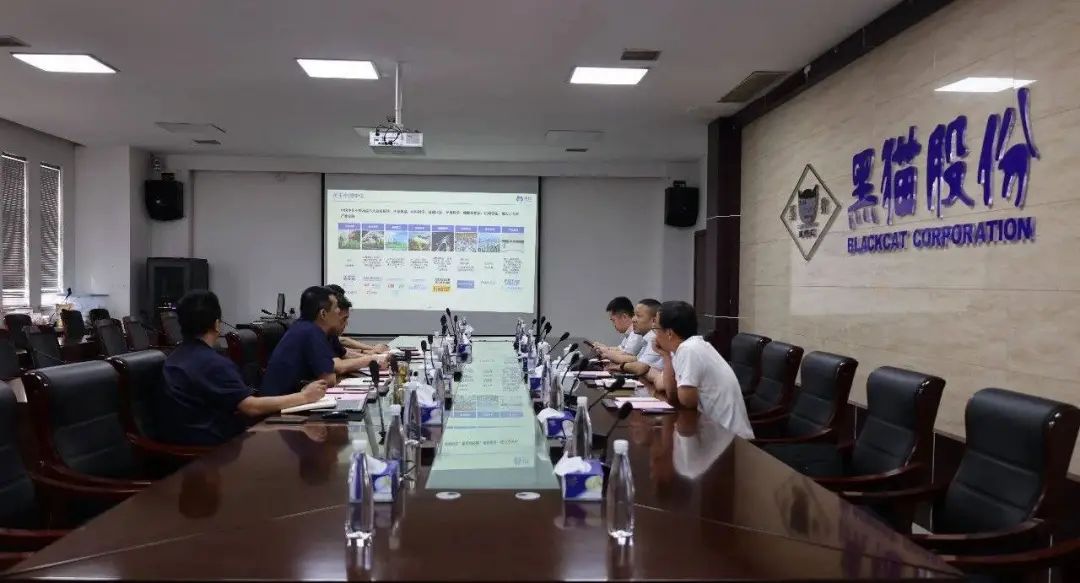 7月14日,中化国际新材料(河北)有限公司党委书记、总经理任建坡一行到黑猫股份开展产业座谈会。黑猫股份党委副书记、董事长魏明主持会议,双方公司相关负责人参加。