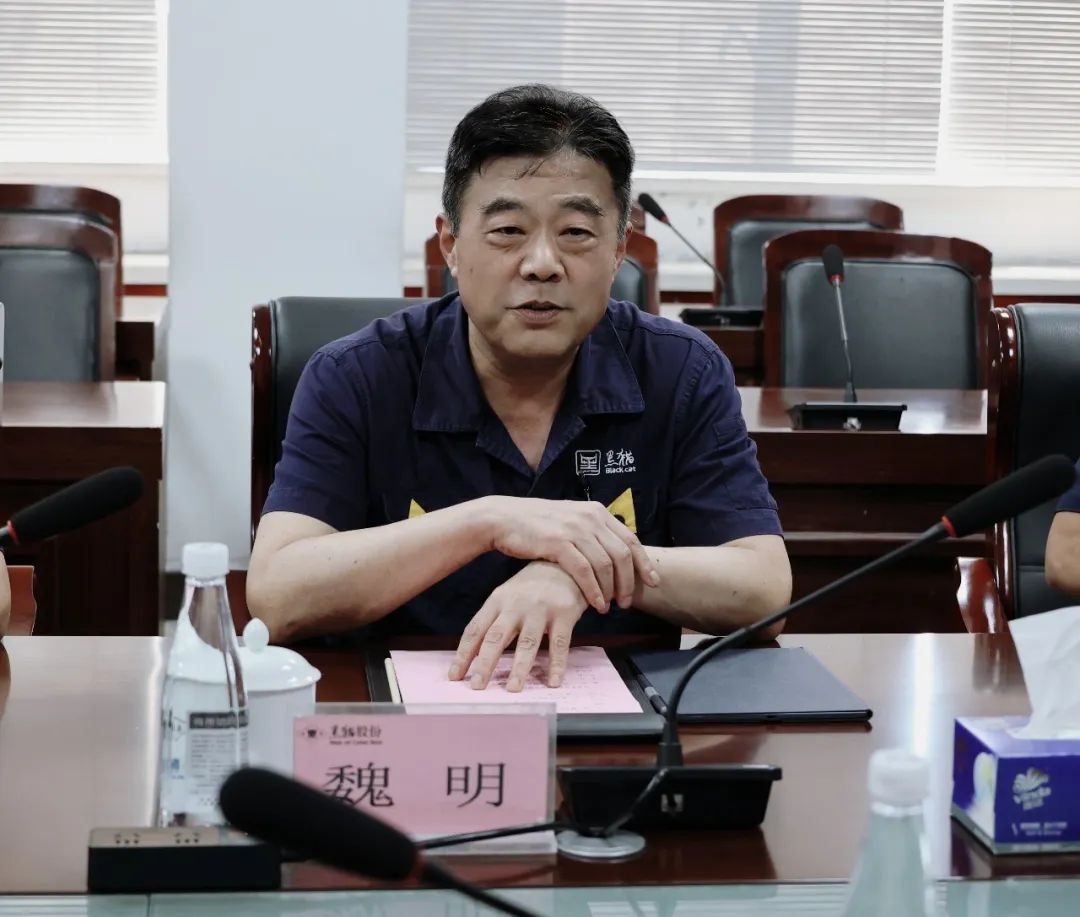 魏明在会上就黑猫股份的企业发展、产业布局等内容展开介绍,并对中化河北新材给予黑猫股份磁县产业项目的支持合作表示感谢。同时希望就双方产业链的互补嵌入展开沟通,围绕产业优势探讨开放合作模式,深化下一步合作对接方案,推动央地国企深度合作,进一步做强做优具有生态主导力和核心竞争力的“链主企业”。