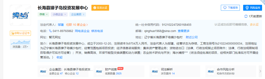 资料显示,长海县獐子岛投资发展中心成立于2000年12月20日,为集体所有制企业,注册地和主要生产经营地均为长海县獐子岛镇沙包村,经营范围为长海县獐子岛镇所属集体资产的管理。