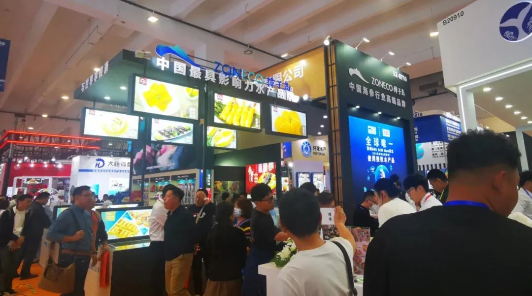 展会现场,只需烹饪几分钟即可上桌的预制菜,引来众多客商纷纷洽谈。公司开发上市的刺参、鲍鱼、扇贝、三文鱼、鳕鱼、鱿鱼、鲐鲅、虾等海洋预制菜产品涵盖即配、即烹、即热、即食四个系列近300个品种,通过直营、加盟、代理、订制等经营模式,进入批发、零售、餐饮、商超、电商等多渠道销售,上千家终端销售网络遍布全国各大主要城市,并出口20多个国家和地区。