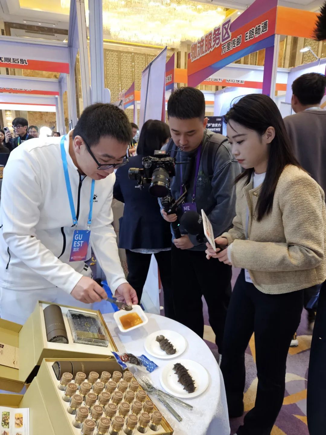 在启幕当天,辽宁省委书记、省人大常委会主任郝鹏,省委副书记、省长李乐成,大连市副市长冷雪峰,市商务局局长李汉国等领导莅临獐子岛集团展台参观指导,獐子岛集团副总裁刘明陪同并介绍獐子岛源刺参产品。