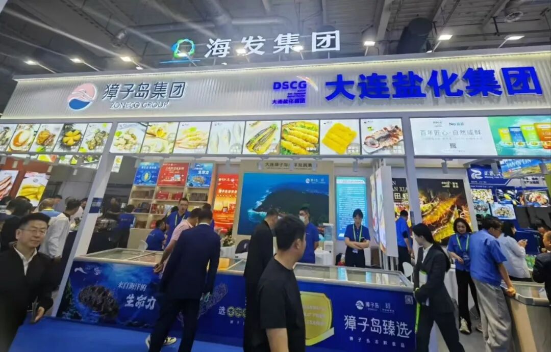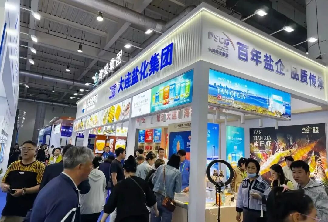 步入大连世界博览广场,獐子岛集团与大连盐化集团作为大连獐子岛海洋发展集团的成员企业,联合打造了融合海洋文化与海洋产品的特装展位,在众多展位中脱颖而出,吸引了络绎不绝的参观者。獐子岛集团带来了琳琅满目的源刺参、扇贝、鲍鱼等海洋食品,而大连盐化集团的盐田虾与海盐系列产品同样备受关注。