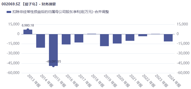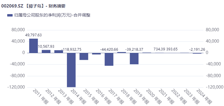 从业绩上看,上市以后,獐子岛短期内一度实现了业绩增长,但是最近几年业绩却不容乐观,营收不断萎缩,净利润则数次亏损。2014年至2024年,公司有6年亏损,2021年至2024年连续4年归母净利润都在1000万元以下,且在2024年亏损2191.26万元。2025年公司业绩继续下滑,2025年前三季度公司营收10.83亿元,同比减少7.14%,归母净利润亏损3237.34万元,同比下降30.79%。