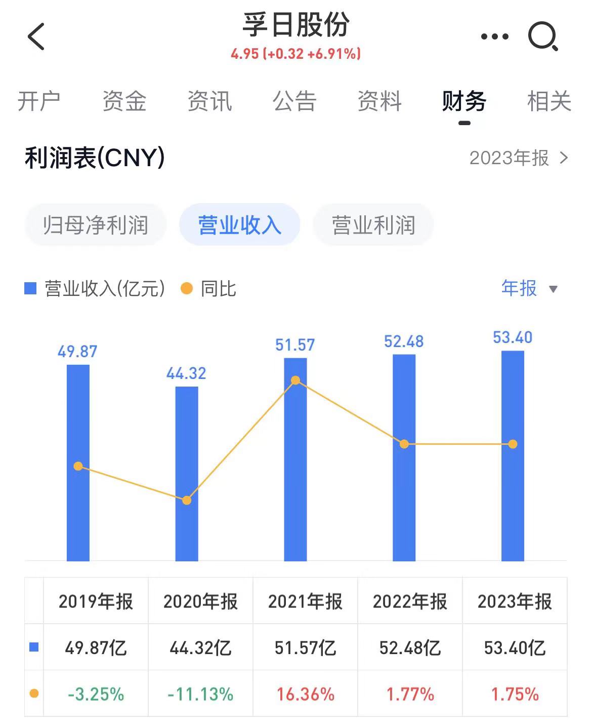 将时间轴拉长,2021年-2023年,孚日股份的营收同比增长分别为16.36%、1.77%、1.75%。可见,其营收增速连续两年下滑。