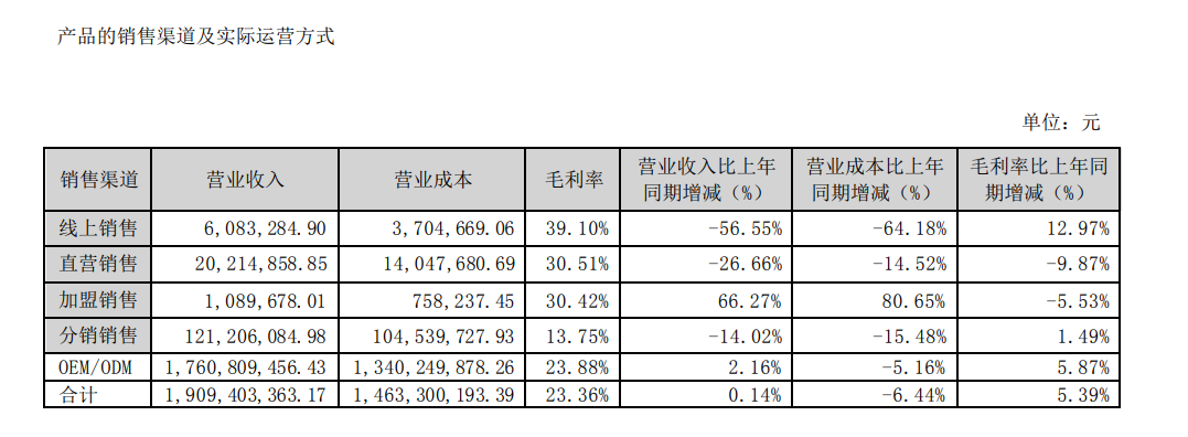 从销售渠道来看,其中孚日股份线上销售营收608.33万元,同比减少56.55%;直营销售渠道营收2021.49万元,同比减少26.66%。