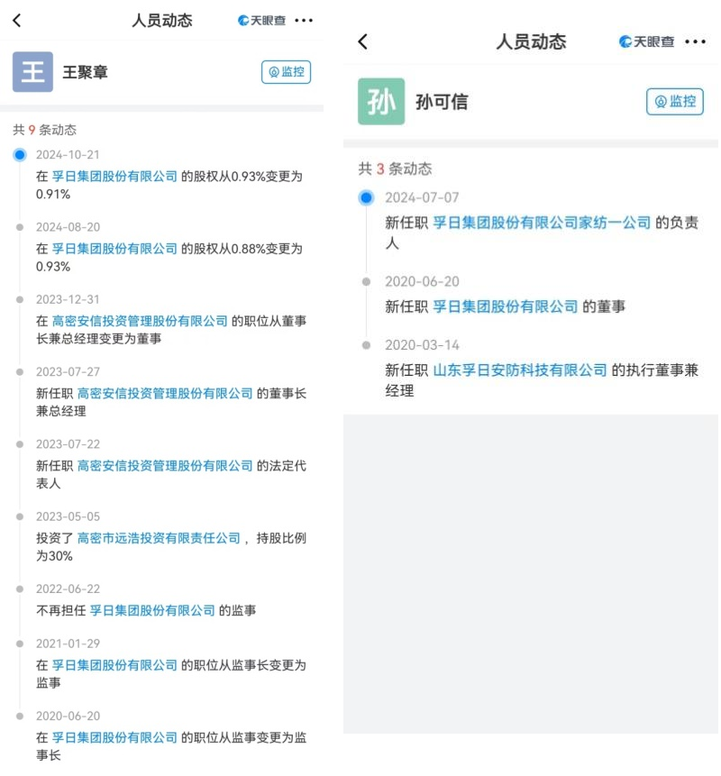其中持股30%的王聚章在2020年6月之前曾任孚日股份的监事,而彼时孙日贵仍是孚日股份的实控人。而另一名持股25%的股东孙可信,在孙日贵仍实控孚日股份时,曾担任孚日股份旗下子公司山东孚日安防科技有限公司的执行董事兼经理。