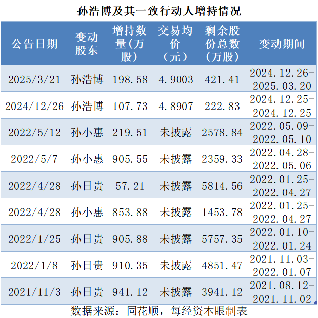 值得注意的是,孙浩博先生及其一致行动人近几年在二级市场频繁增持公司股份。2021年8月以来,其已累计增持5728.53万股,占公司2024年三季度末总股本7.83亿股的7.3%。