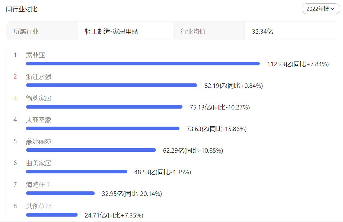 不过从目前已发布2022年度业绩报告的部分家居上市企业的营收来看,海欧住工的营收规模并不算大,但其2022年的营收同比降幅却排在行业前列。