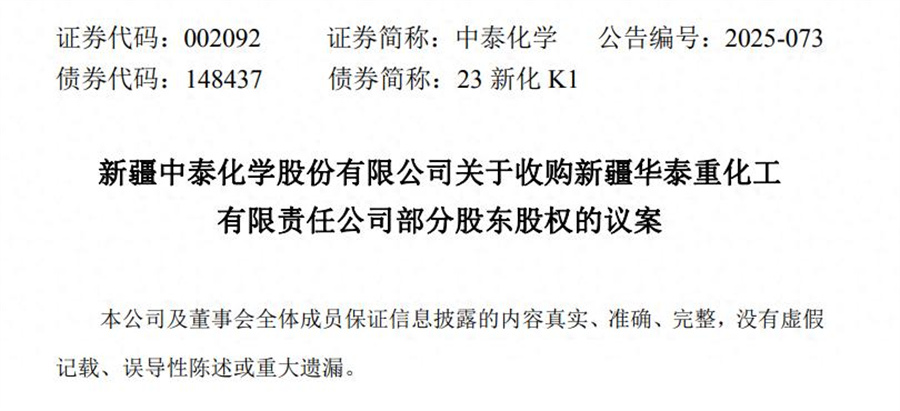 公告披露,现根据四方于2019年12月签署的《 新疆华泰重化工有限责任公司 之增资协议》相关退出条款的约定, 中泰化学 拟以12亿元收购 农银投资 、投资计划、陕金资管合计持有的华泰公司15.173%股权。