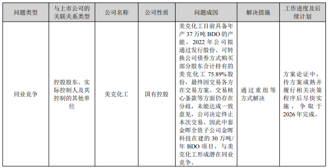 值得关注的是,公司控股股东控制的美克化工具备37万吨/年BDO产能,与中泰金晖在建的30万吨BDO项目存在潜在同业竞争。2022年公司曾计划收购美克化工75.89%股权,因交易条款分歧终止。