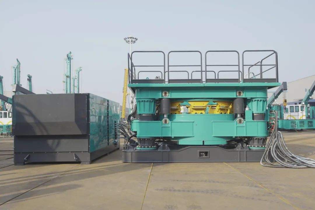 作为地下工程成套解决方案供应商,山河智能为满足客户定制需求继而开发了SWRC260全回转全套管钻机,较已有的SWRC170H自行式全回转全套管钻机(1000mm至1700mm)适用钻进的套管直径更大(1200mm至2600mm),且具有更强的施工能力(动力头最大扭矩达到5305kN.m)。至此,填补了公司分体式全回转全套管钻机的产品空缺,用户可依据工程实际需求选择相应型号的设备进行全套管施工作业。