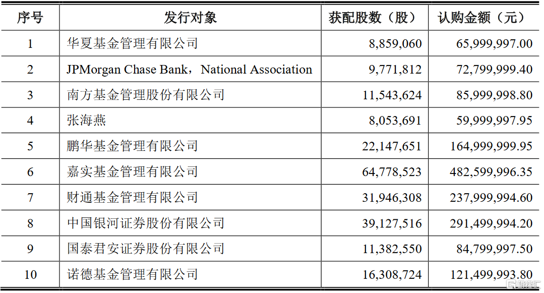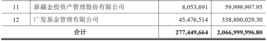 天康生物(002100.SZ)发布非公开发行股票发行情况报告书暨上市公告书,确定此次非公开发行股票的发行价格为7.45元/股,发行股份数量277,449,664股,募集资金总额约20.67亿元。此次发行对象最终确定为12家,所有发行对象均以现金方式认购此次非公开发行的股票,最终配售情况如下: