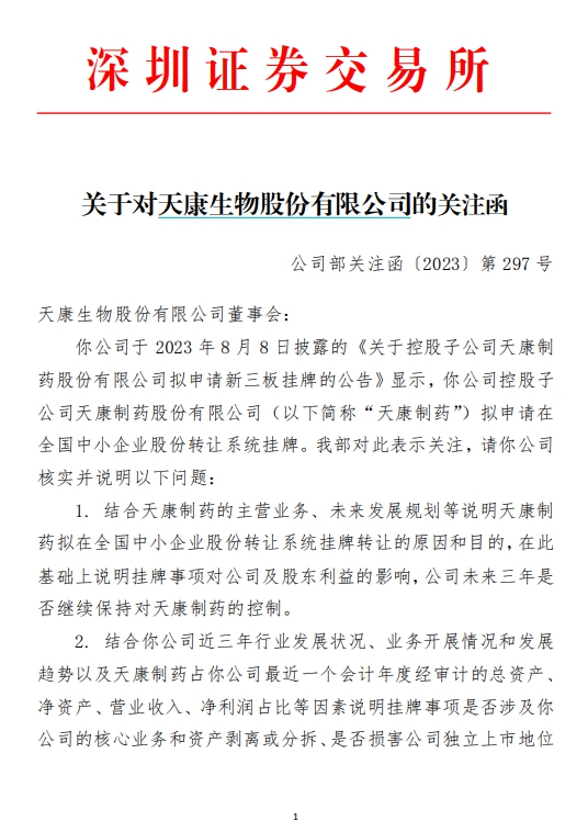 深交所还要求天康生物说明天康制药与公司之间是否存在独立竞争和持续性交易,双方高级管理人员是否存在交叉任职,是否能保持各自资产和财务独立,并在此基础上说明挂牌转让的相关制度安排。