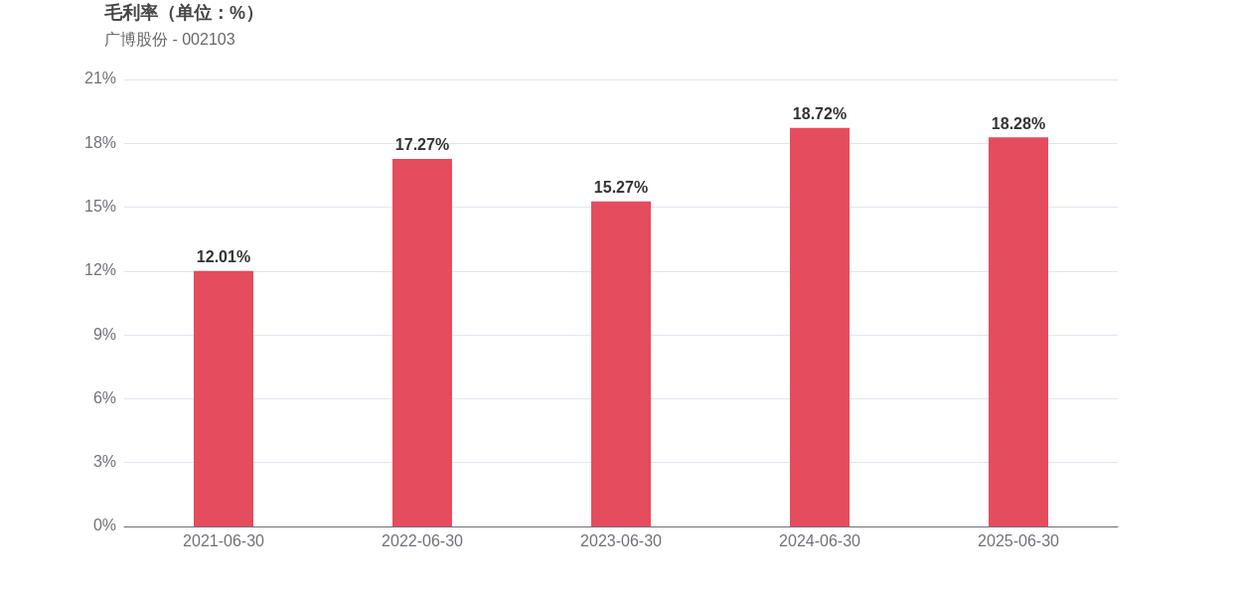 从反映盈利质量的指标来看,广博股份净利率由2024年上半年的6.39%提升至6.50%,但毛利率从18.72%下滑至18.28%,净资产收益率为6.99%,同比下降0.51个百分点。