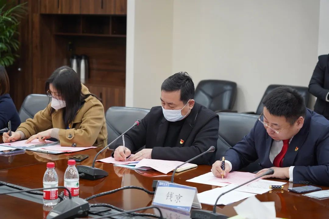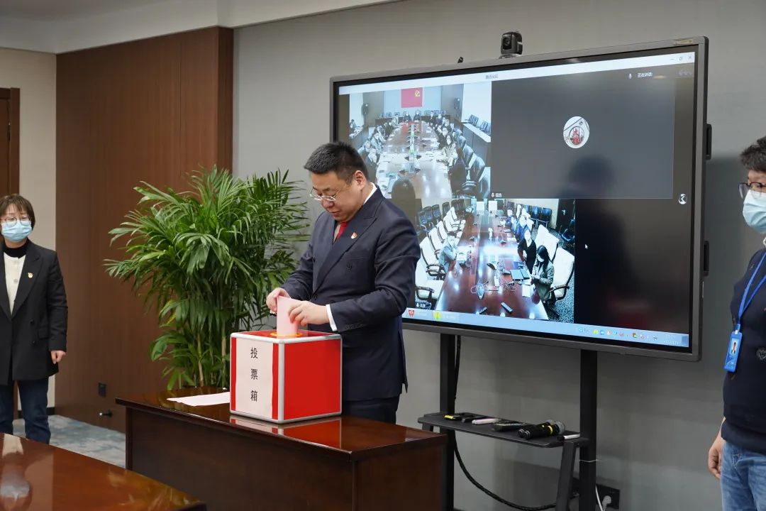 2023年1月9日上午,恒宝股份党委换届选举大会在丹阳总部现场隆重召开,其他地区的党员同志通过通讯方式视频参会。