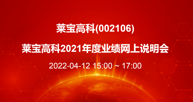 莱宝高科(002106)2021年度业绩网上说明会于 2022年4月12日(星期二)下午15:00~17:00在全景路演成功举办。