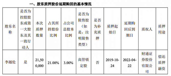 三维通信10月25日发布公告称,公司于近日接到公司实际控制人李越伦的通知,获悉其将原质押本公司的部分股份办理了延期购回交易。质押数量为2150万股,占其所持股份比例21.00%,占公司总股本比例3.00%。