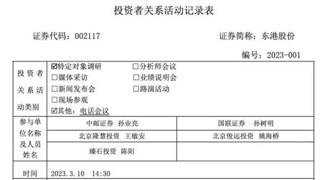全国最大的专业票据印刷企业东港股份(002117.SZ)于3月10日接受了中邮证券、国联证券等机构投资者的调研。东港股份介绍了公司总体经营情况,并就投资者关心的公司2023年新业务开展情况,以及公司人工智能业务的发展方向等问题做了答复。