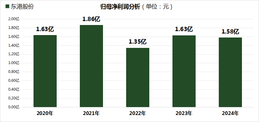 2023年至2024年,东港股份的净利润有一定变化。2023年归母净利润为1.63亿元,2024年归母净利润同比下滑3.36%。营业总收入方面,2023年为12.01亿元,2024年同比下降1.92%。扣非净利润的变化也较为明显,2023年为1.51亿元,2024年同比下滑21.33%。