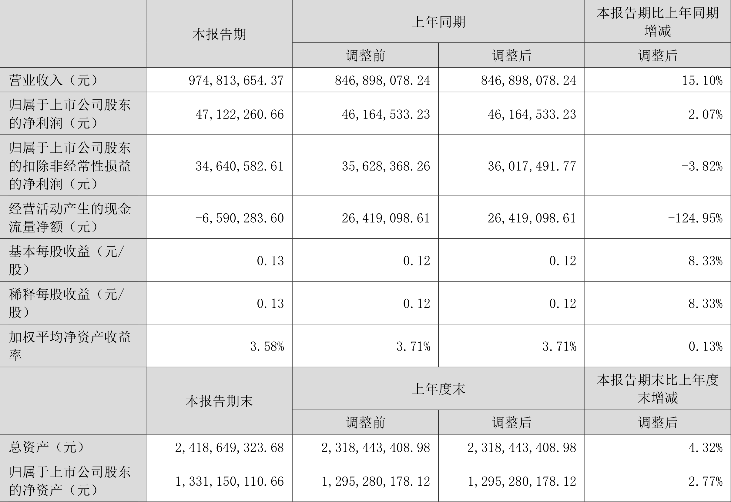 根据半年报,公司第二季度实现营业总收入5.44亿元,同比增长18.48%,环比增长26.48%;归母净利润2832.27万元,同比增长5.54%,环比增长50.66%;扣非净利润2342.06万元,同比增长3.21%,环比增长108.74%。
