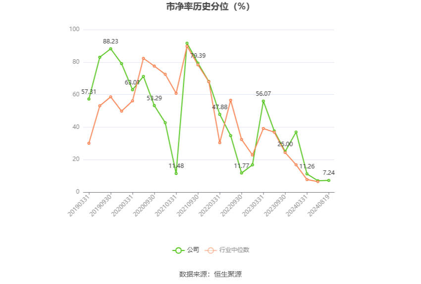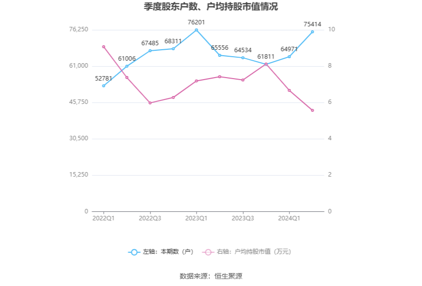 筹码集中度方面,截至2024年上半年末,公司股东总户数为7.54万户,较一季度末增长了1.04万户,增幅16.07%;户均持股市值由一季度末的6.67万元下降至5.57万元,降幅为16.49%。