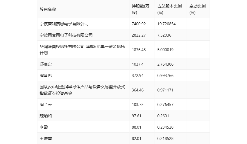 半年报显示,2024年上半年末公司十大流通股东中,新进股东为周兰云、魏炳如、李霞、王进南,取代了一季度末的孙丰、庄春明、张先知、赵芹。在具体持股比例上,国联安中证全指半导体产品与设备交易型开放式指数证券投资基金持股有所下降。