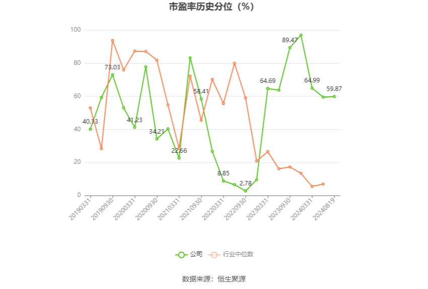 市盈率为负时,不显示当期分位数,会导致折线图中断。