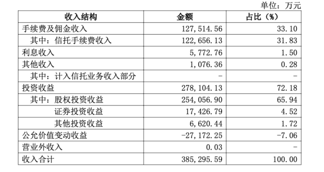 2024年,华润信托主动管理型信托资产2.34万亿元,其中证券投资2.28万亿元、股权等投资443.87亿元、融资类51.49亿元;而事务管理类信托资产期末金额为3430.29亿元。2024年,华润信托的信托手续费收入为12.27亿元,占总收入的31.83%。
