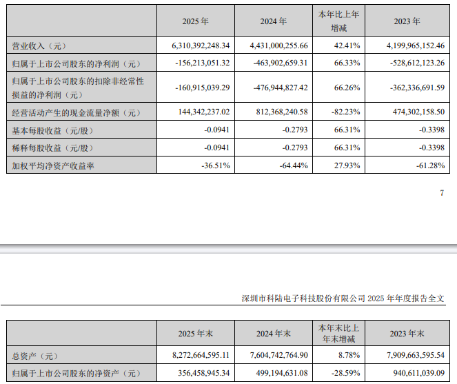 2025年,科陆电子整体经营指标呈现明显改善趋势,多项核心数据同比优化,亏损收窄力度超出市场预期:
