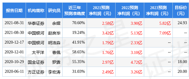 数据中心根据近三年发布的研报数据计算,华泰证券余熠研究员团队对该股研究较为深入,近三年预测准确度均值为70.6%,其预测2021年度归属净利润为盈利2.58亿,根据现价换算的预测PE为25.34。