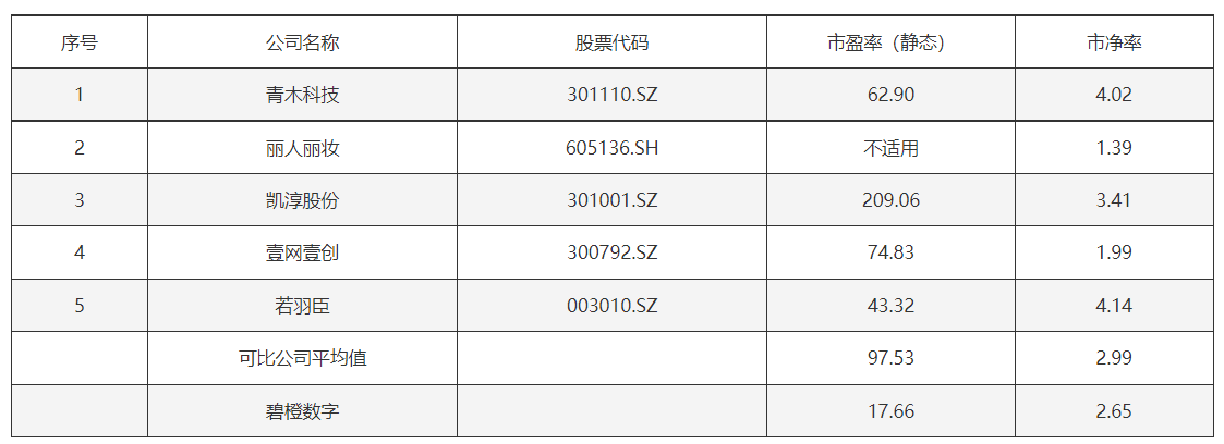 不过,如果仅从估值来看,截至2024年末,碧橙数字的静态市盈率仅为17.66倍,远低于可比上市公司97.53倍的均值。
