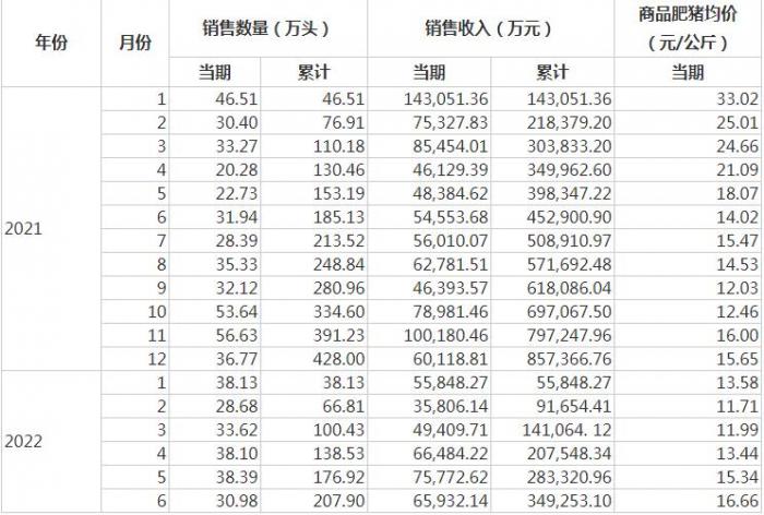 统计结果显示,2021年上半年,公司生猪销售均价为22.65元/kg,今年上半年销售均价则仅为13.78元/kg。