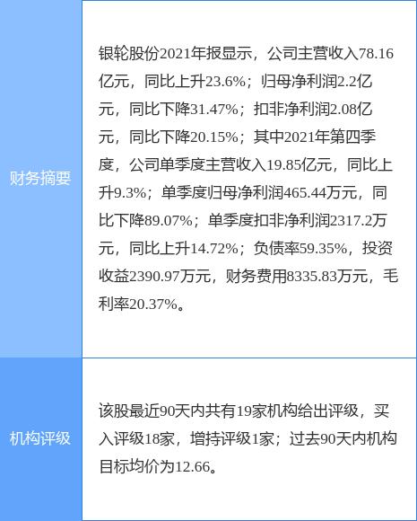 2022年4月14日,华安证券研究员陈晓,宋伟健发布了对银轮股份的研报《成本上升影响全年业绩,新能源业务快速发展》,该研报对银轮股份给出“买入”评级。研报中预计公司2022-2024年EPS分别为0.51/0.74/1.00元。维持“买入”评级。证券之星数据中心根据近三年发布的研报数据计算,该研报作者对此股的盈利预测准确度为86.4%。