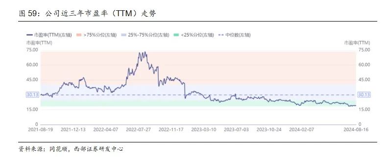 期间费用方面,公司销售费用率和管理费用率呈现逐年下降趋势,2023年销售/管理费用率分别为2.6%/5.5%,较2019年分别-2.7/-1.7pcts;2024年Q1销售/管理费用率分别为2.4%/5.3%,期间费用率持续优化。为满足公司新业务持续拓展需要,公司研发费用率2022年以来有所提升,2023年研发费用率4.5%,较2019年+0.5pcts;2024年Q1研发费用率4.6%,整体保持稳定。