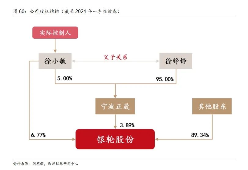 公司股权结构较为分散,实控人股权占比6.96%。截至2024年一季报披露,公司董事长徐小敏为公司实际控制人,直接持有公司6.77%的股权,并通过宁波正晟间接持有0.19%股权。实控人之子徐铮铮2020起担任公司副董事长、乘用车与新能源热管理事业部总经理,目前通过宁波正晟间接持有公司3.70%股权。其余股东合计持有公司89.34%股权,整体股权结构较为分散。