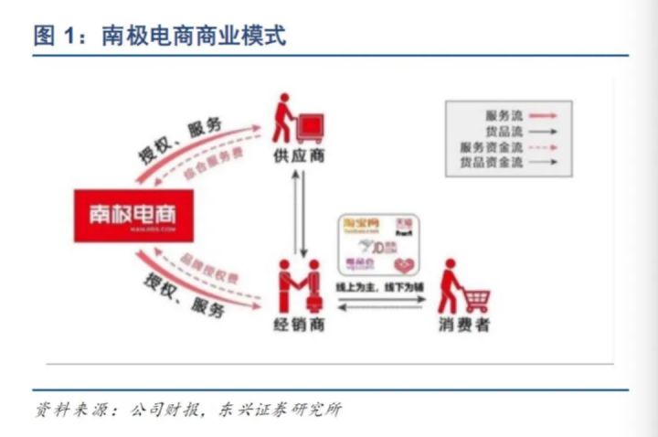 南极电商的主要工作就是对上游供应商和下游经销商的链接。