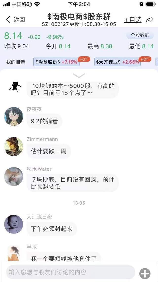 在尺度APP南极电商股东群,有不少散户投资者聚集于此讨论着南极电商的股价,有投资者称没有回购又没有明星基金抄底,前景比较悲观。