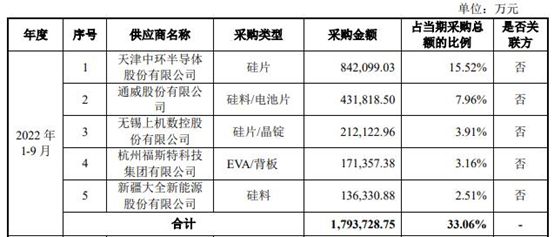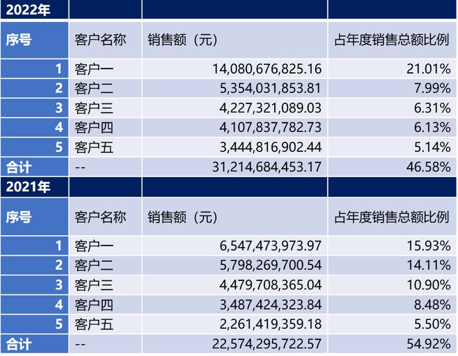 TCL中环2021、2022年度前五大客户;来源:公司公告