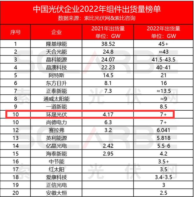 年报显示,2022年TCL中环的光伏组件营业收入为108.41亿元,同比增长77.20%。光伏组件2022年产量为6.62GW。据索比光伏网统计,环晟在2022年出货量与尚德电力并列第10。