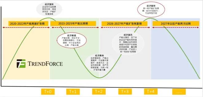 光伏市场的周期性,叠加了结构性和节点性两大特点。集邦咨询分析称,2023至2025年是光伏行业的产能出清期,此前数年的产能扩张需要时间消化,同时产业升级随之而来,即从P型电池向N型电池的技术迭代。从2026年开始,随着全球经济复苏、技术迭代完成,光伏产能会显著恢复,在2027年达到顶点后再次进入产能过剩期。